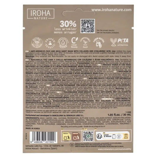 Remove the white film from the top and bottom and keep the film transparent. Place the individual cloth mask on clean skin. Once set, remove the transparent film. Leave to act for 15-20 minutes. Use the side tab to remove the mask. Rinse off any remaining mud with water.