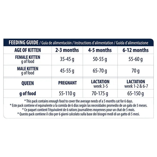 Analytical constituents: crude protein 28.00%; crude oils and fats 11.00%; crude fibre 1.80%; crude ash 7.10%; calcium 1.00%; phosphorus 0.80%; sodium 0.80%; potassium 0.60%; magnesium 0.06%; taurine 3000mg/kg; Omega-3 fatty acids 1.70%; Omega-6 fatty acids 0.50%; EPA 0.50%; DHA 0.70%.