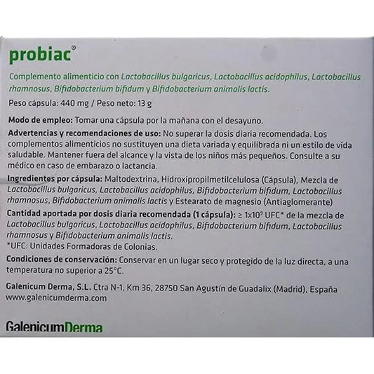 Discover the power of drugstore probiotics to improve the health of your skin with Galenicum Derma Probiac. These capsules are designed to deliver specific probiotic benefits to help balance and strengthen the skin barrier. With a unique and advanced formula, Galenicum Derma Probiac contains a combination of beneficial probiotics that work synergistically to promote healthy, radiant skin. If you're looking for a reliable product backed by trusted pharmacies, look no further. Galenicum Derma Probiac is available at Angulo Pharmacy and can be the perfect ally for your skin care routine.